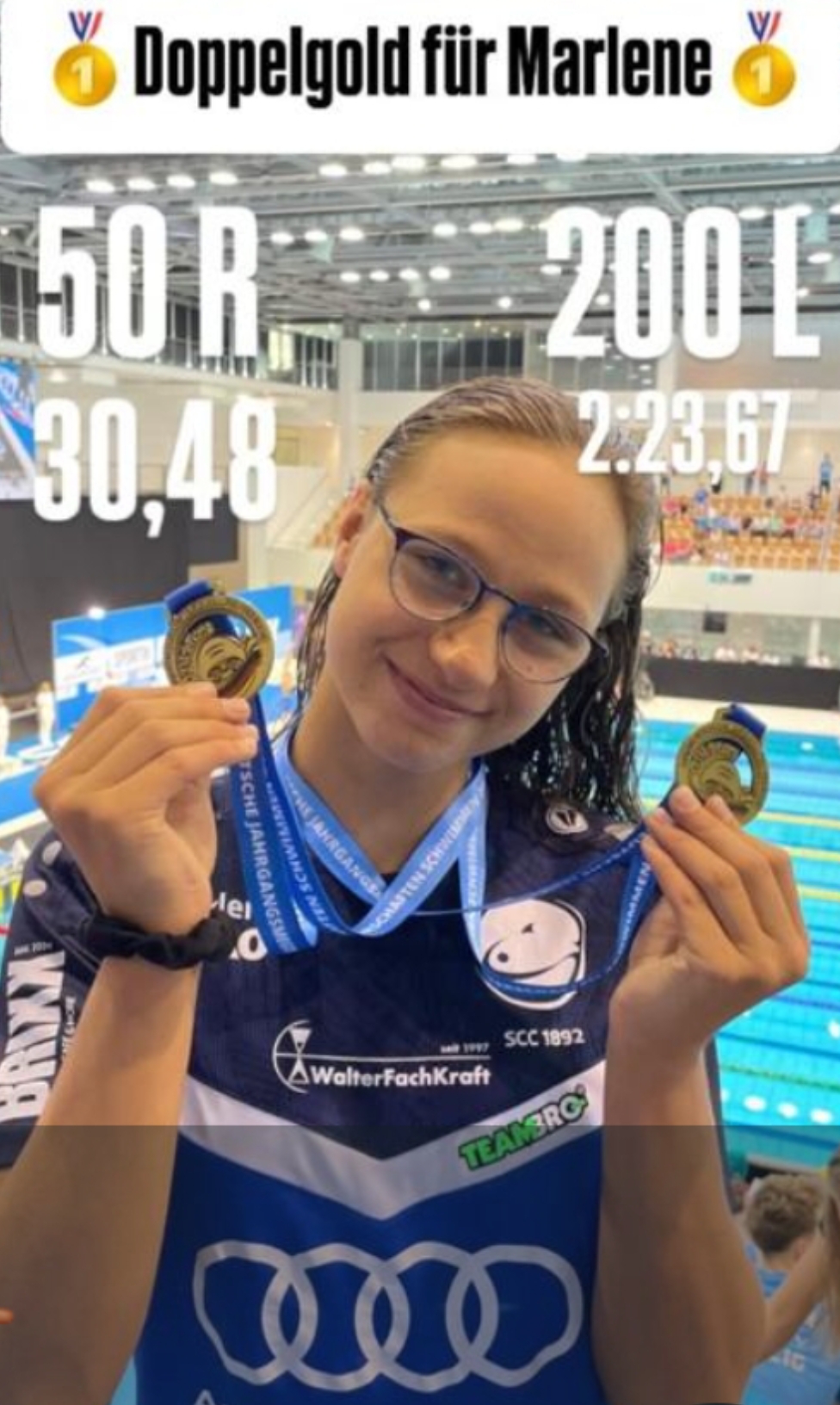 Sportliche Erfolge: - Deutsche Freiwassermeisterin Jg. 2013 über 2,5 km (Rostock) - Deutsche Vizemeisterin Jg. 2013/14 im Schwimmerischen Mehrkampf Brust (Dortmund) - 3. Platz bei den Deutschen Freiwassermeisterschaften mit der 3x1,25 km Staffel wbl. Jugend B (Rostock)