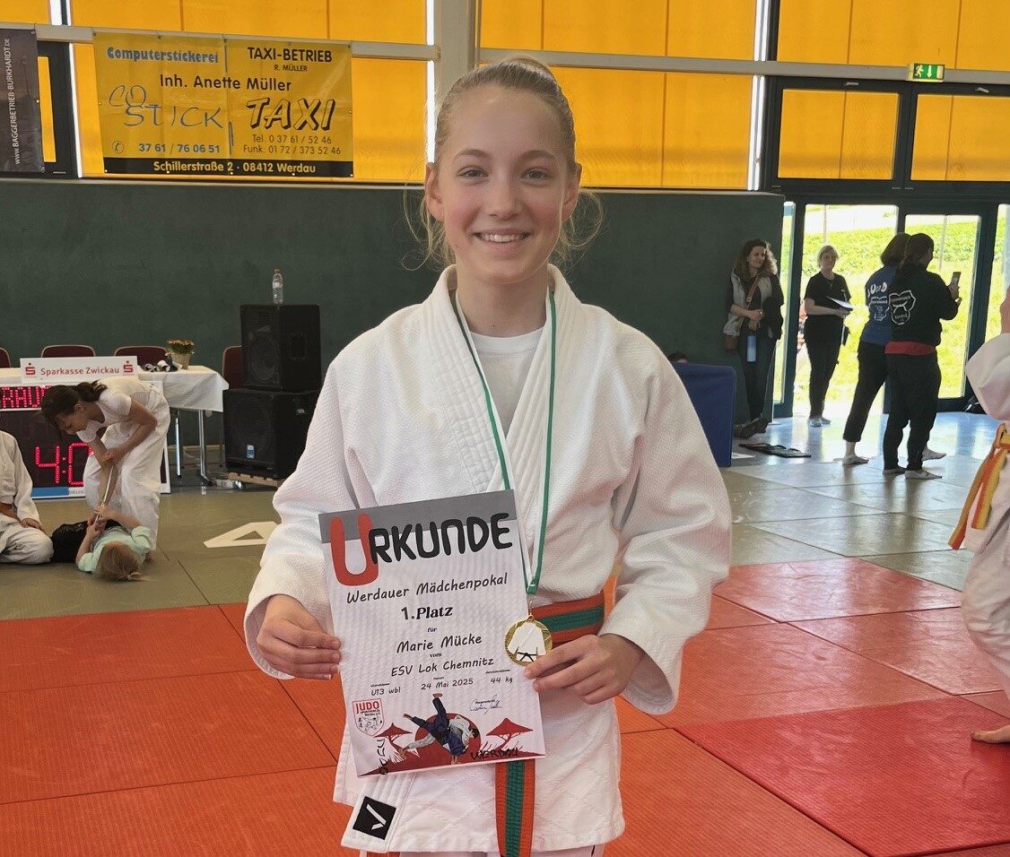 Charakterliche Stärken: zielstrebige und fleißige Sportlerin; Verletzung hat Marie mit Ausdauer und gesundem Ehrgeiz überwunden und schaffte den Anschluss an das hohe Leistungsniveau. Die Platzierungen zu Turnieren belegen ihren guten Weg zur Spitze in ihrer Altersklasse. Die Vizemeisterschaften auf Bezirks- und Landesmeisterschaft 2025 sind ihre herausragenden Erfolge. Auch bei ihr ist die Vorbildwirkung der Eltern Romy und Torsten Mücke ausgeprägt. Mit der jungen Generation führt Marie die Traditionen erfolgreichen Judosports im ESV Lokomotive Chemnitz fort.