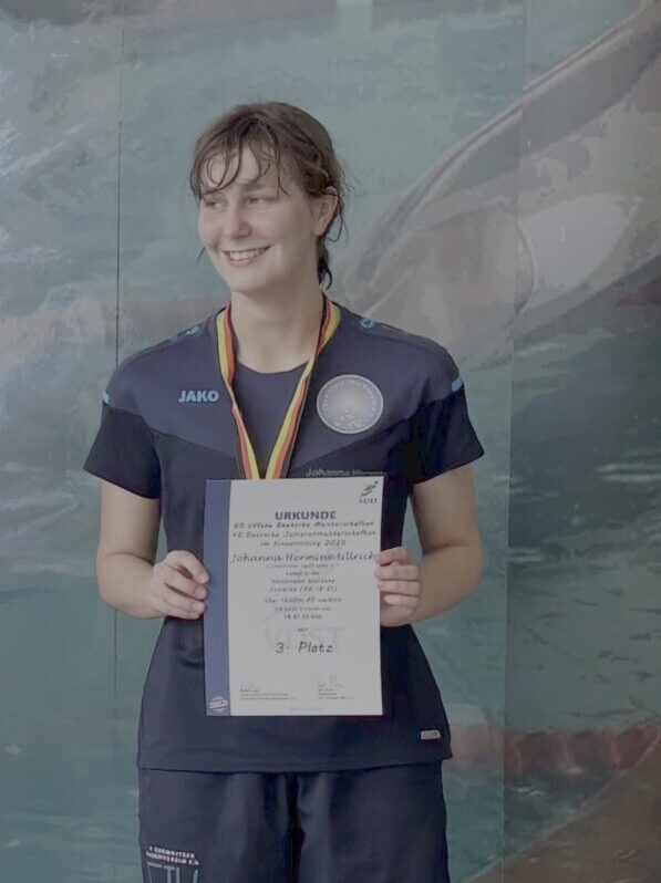 Das sollte noch erwähnt werden: Trotz der Anforderungen der 12. Klasse und der intensiven Vorbereitung auf ihr Abitur engagiert sich Johanna ehrenamtlich und nimmt regelmäßig am Training sowie an Wettkämpfen teil.