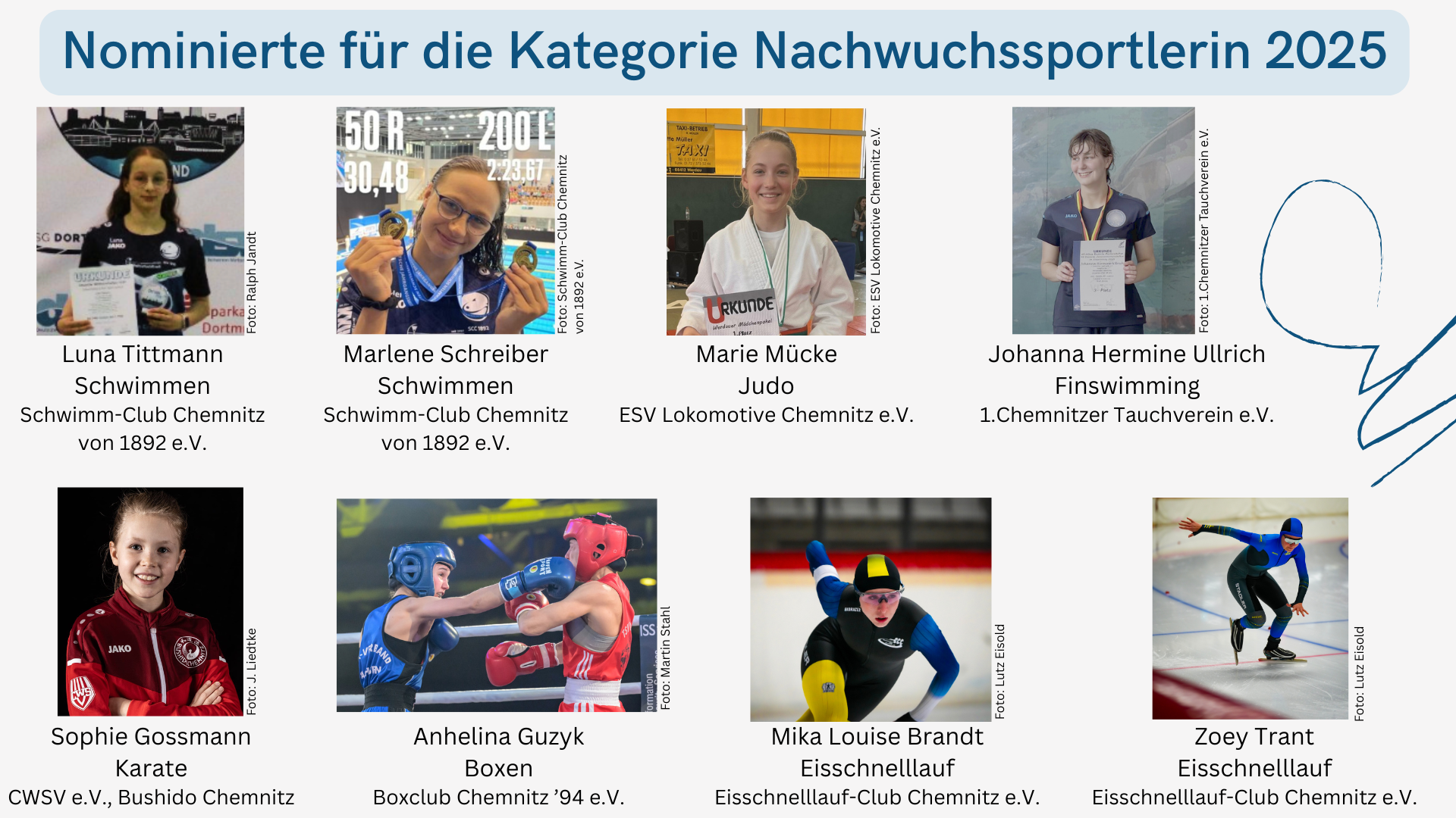 Sportinteressierte haben vom 14. bis 31. Januar 2026 die Möglichkeit, in einem Online-Voting auf der SSBC-Homepage für ihre Favoriten zur 15. Chemnitzer Sportjugend-Ehrung abzustimmen.